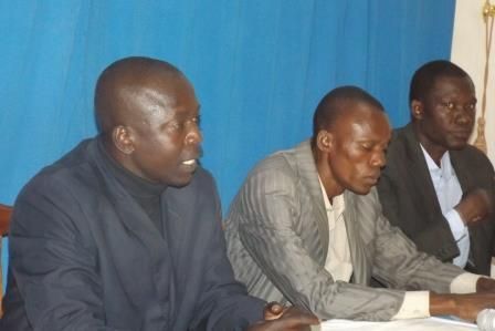 Me Séraphin le modérateur, l'inventeur de la machine à vitesse perpetuelle Neldjita Adoum au milieu et Bagdara à droite